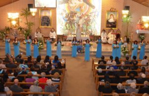 Ngài 13/10/2017, đúng 6:30 chiều, Đại Lễ tiễn biệt Mẹ Fatima đã đến. Từ xa, giáo dân quanh khu vực Ottoway, gồm nhiều sắc dân: Việt Nam, Ba Lan, Ấn Độ, Phi Luật Tân lũ lượt kéo đến. Họ tròn mắt nhìn phía trước Thánh đường, nhiều dây cờ rực rỡ màu trắng, xanh, vàng đỏ, biểu tượng của các sắc dân, ngay cửa chính vào Thánh đường là hai trụ cờ vàng ba sọc đỏ được cắm thẳng đứng, các lá cờ lớn nhỏ này tung bay theo cơn gió, làm cho niềm hân hoan thêm khởi sắc. Hai cô bé mặc áo dài trắng, thắt nơ màu xanh ngang eo như áo mẹ Maria, hai cô bé đón chào tín hữu bằng nụ cười tươi và trao tập sách chương trình Thánh Lễ.