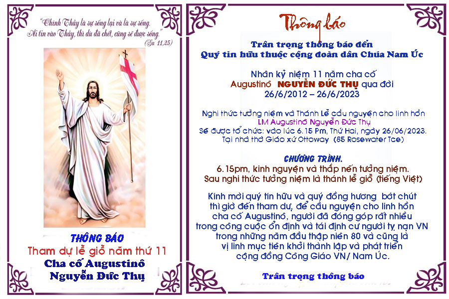 Thông Báo: Thư mời Thánh Lễ giỗ cha cố Âutinh Nguyễn Đức Thụ. by chadiepucchau.com · 23 June, 2023 Thư mời Thánh Lễ giỗ cha cố Âutinh Nguyễn Đức Thụ. Share