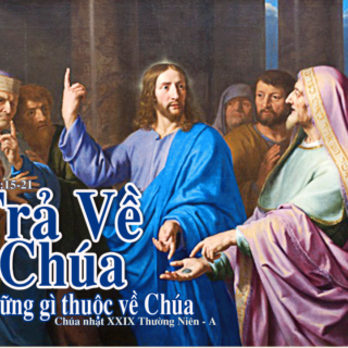 CHÚA NHẬT XXIX QUANH NĂM Sách Ngôn Sứ Isaia 45.1,4-6;Khởi đầu Thư I của Thánh Phaolô tông đồ gửi tín hữu Tessalonica 1,1-5bvà Phúc Âm Thánh Matthêô 22.15-21 Tin Mừng Chúa Giêsu Kitô theo Thánh Matthêu.Khi ấy, các người biệt phái họp nhau lại bàn mưu để bắt bẻ Chúa Giêsu trong lời nói. Các ông sai môn đồ của các ông đi với những người thuộc phái Hêrôđê đến nói với Người rằng: “Thưa Thầy, chúng tôi biết Thầy là người ngay chính, căn cứ theo sự thật mà dạy bảo đường lối Thiên Chúa. Thầy chẳng cần để ý...