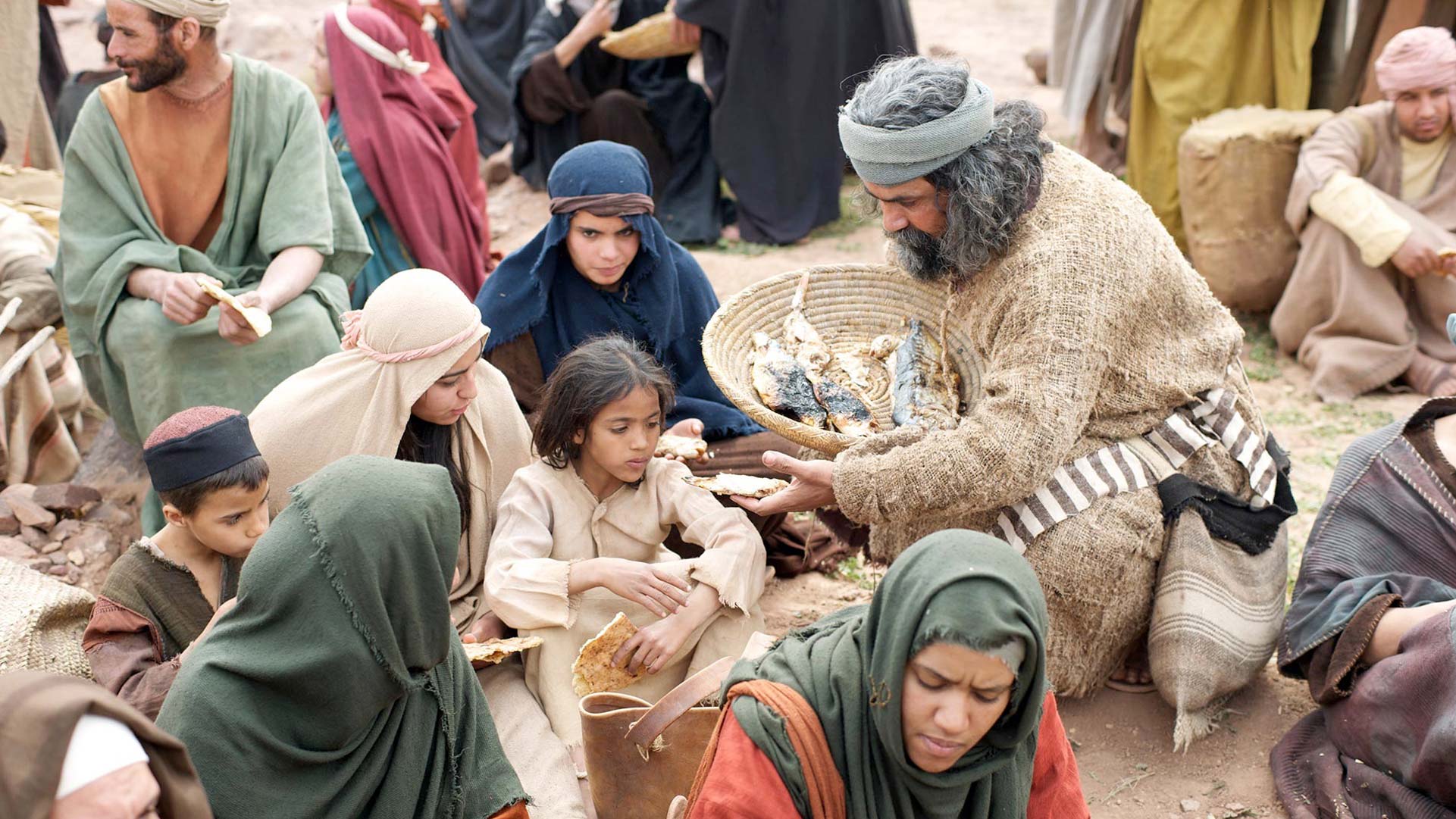 Khi thấy đoàn lũ dân chúng đông đảo theo Chúa. Chúa gọi các tông đồ và nói với họ là Chúa thương dân chúng vì họ đã theo Chúa nghe giảng dạy 3 ngày rồi và không có gì ăn. Chúa không nỡ giải tán họ vì họ sẽ quị ngã dọc đường.
