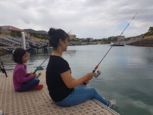 Chúng tôi được các anh chở ra cầu Jetty, xem các anh câu cá, có rất đông người đang đứng dọc theo hai bên cầu và thả cần câu xuống biển. Các anh câu được hai con cá hồng, một con mực lớn, nửa sô ghẹ. Cùng với hơn 2 kg cá các anh câu tại cầu nổi ở nhà Chị em lại xúm vào, nấu nướng và cùng ăn cơm trưa, bữa cơm đầy ắp tiếng cười, sau đó nhóm chúng tôi ra về trước, cho kịp giờ tập hát Thánh Lễ sáng Chúa Nhật tại Adelaide. Chúng tôi cũng được biết sẽ có nhóm trẻ khác booking để vào nghỉ tại ngôi nhà này, vào dịp cuối tuần